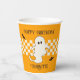 Cette tasse en papier est parfaite pour une fête d'anniversaire amusante et éffrayante sur le thème de l'Halloween. Doté d'adorables fantômes et chauves-souris au design à damiers rétro et branché, il s'agit d'un incontournable matériel de fête pour une inoubliable fête d'anniversaire d'Halloween.