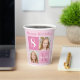 Cool 2 photo personnalisées heureux fête d'anniversaire tasse de papier pour une petite fille ou tout petit. Célébrez l'anniversaire de votre enfant avec de jolies photos d'eux sur ce ajouter votre propre design photo avec d'adorables carrés roses. Ajoutez leur nom et leur âge.