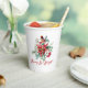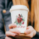 Fleurs et feuilles d'aquarelle modernes, poinsettia, oiseaux mignons et baies rouges pour les tasses de papier de fête de Noël avec typographie rouge personnalisée. Elégante et joyeuse ambiance de vacances.