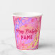 Coupes de papier à thème d'anniversaire rose avec le nom de la personne et "Joyeux anniversaire !" Le design a un effet de couleur spécial avec divers points orbites ajoutant profondeur, couleur et richesse au contexte. Un beau design qui ajoute tant de charme à votre table ! Les accessoires correspondants vendus séparément comprennent des tasses en papier et une plaque en papier avec vos photos personnelles. HAMbyWhiteGlove alias HAMbyWG.