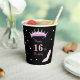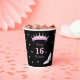 Gobelets En Papier Joyeux 16e anniversaire en noir et rose
