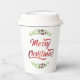 Belles branches de laurier aquarelle et baies avec texte élégant 'Joyeux Noël' dans un dégradé rouge riche décorent ce design de tasse en papier. Cherchez ID293 pour voir d'autres produits avec cette conception.