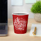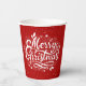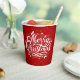 Ces tasses de papier de Noël rouge et blanc classique souhaitent à tous un "Joyeux Noël" dans un script amusant mais traditionnel avec des plats de saison élégants.