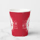 Joyeux Noël Snowflakes Red Festive Tasses en papier présentent des flocons blancs sur un arrière - plan rouge avec le texte "Joyeux Noël" dans le script de calligraphie moderne. Conçu par ©Evco Holidays www.zazzle.com/store/evcoholidays