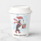 Joyeux Noël Pingouin Aquarelle Coupes de papier café d'hiver avec un mignon pingouin d'aquarelle portant un cadeau de Noël avec le texte "Joyeux Noël" ci-dessous en écriture noire moderne. Parfait pour les fêtes de Noël. Conçu par Evco Holidays www.zazzle.com/store/evcoholidays