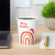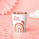 Joyeux Noël Santa Hat Rainbow Modern Holiday Party Paper Cups présente un arc-en-ciel fantaisiste amusant et coloré avec un chapeau de Père Noël ci-dessus est le texte "Joyeux Noël" dans un script moderne écrit à la main rouge. Voir d'autres objets de cette collection conçue par Evco Holidays https://www.zazzle.com/store/evcoholidays