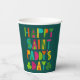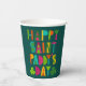 Ajoutez un peu de St. Patrick's Day à votre prochaine fête avec ces tasses en papier. Le message amusant HAPPY SAINT PADDY'S DAY est présenté en lettres peintes à la main, modernes et lumineuses, avec un couple de shamrocks. Le message en vert, jaune, orange, magenta et bleu vif est placé contre un arrière - plan turquoise foncé.