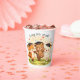 A charming woodland graduation design featuring a cute fox, gentle bear, and sweet bunny wearing graduation caps, laughing, dancing, and celebrating together. They stand on soft green grass with delicate flowers, while floating hearts, sparkles, and confetti fill the air above them. A warm golden glow background creates a cozy and joyful atmosphere, bringing this adorable forest animal scene to life. Perfect for preschool or kindergarten graduation parties, these woodland-themed paper cups add a sweet and playful touch to your celebration table.