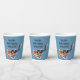 Créez des provisions sur mesure, parfaites pour tous ceux qui aiment le koi poisson et les étangs ornementaux. Ces tasses en papier sont prêtes à être personnalisées avec votre propre message et présente une illustration réaliste d'un poisson koi en orange, noir et blanc dressé contre un arrière - plan bleu clair.