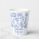 La dolce vita blue stripes hand drawn Italian bridal shower monogrammed paper cups, la dolce vita personalized coffee cups, Italian bridal shower printed paper cups personalized Italian bridal shower decor, vintage blue stripes bridal shower paper cups