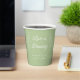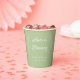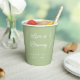 Ces tasses personnalisées de sauge en papier vert sont parfaites pour un mariage, une fête de fiançailles, une douche nuptiale ou un dîner de répétition. Le design se compose de polices simples et modernes et d'une bordure d'eucalyptus. Customisez-les avec votre nom et votre date d'événement pour en faire un de type. Ajoutez-les à vos faveurs café pour une touche plus personnelle !
