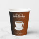 Coupe en papier ombrée noire et terracotta pour fête de fiançailles avec tasse à café et fumée en forme de cœur. Personnalisez-la avec les détails de votre événement et changez les couleurs.