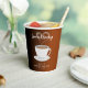 Gobelet en papier ombré noir et terre cuite pour fête de mariage "l'amour se prépare" avec tasse de café et fumée en forme de cœur. Personnalisez-le avec les détails de votre événement et changez les couleurs.