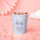 Les gobelets présentent un fond lilas clair orné d'un motif floral doux et d'une police calligraphique chic. Personnalisez facilement les options de texte, y compris le nom de la mariée et la date du lancement de mariage. Ajoute une touche soignée à la célébration du mariage.