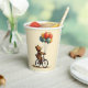 Ce dessin capture un moment de joie pure et innocente avec une illustration fantaisiste d'un ours en peluche gai. L'ours est heureux de rouler à vélo avec un tas de ballons colorés attachés à lui, symbolisant la liberté et le plaisir. Cette image délicieuse est parfaite pour les articles pour enfants, ou pour toute personne qui apprécie un design doux et léger qui apporte un sourire à leur visage.