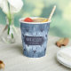 Ce design de tasse en papier présente un motif branché de silhouettes de tête de cerf avec des bois incurvés, des flèches stylisées et de minuscules flocons de neige en marine foncée sur un arrière - plan bleu ciel à effet texturé. Un texte optionnel "Joyeux Fêtes" et un étiquette ont été fournis pour ajouter votre nom et/ou un autre texte. Faites une recherche ID861 à ID864 pour voir d'autres options de couleurs et d'autres produits dans cet ensemble moderne de design de Noël.