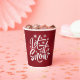 Éclairez votre Noël avec ce design de gobelet en papier joyeux qui présente une typographie blanche "Let it Snow", saupoudrée de flocons de neige sur une solide texture arrière - plan rouge. Recherchez ID951 pour voir d'autres produits avec cette conception.