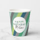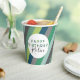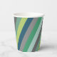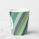 Ces tasses cool et modernes en papier présentent un arrière - plan de rayures diagonales en vert citron, vert kelly, gris, bleu clair et bleu moyen avec un centre blanc et le message "HAPPY BIRTHDAY" épelé en lettres grises, vertes et bleues assorties avec votre propre nom ci-dessous en lettres de script noir. Ces tasses en papier design sont parfaites pour les fêtes pour hommes et ados.