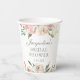 Personnalisez ces gobelets en papier élégants pour la douche de mariage florale décorés de belles roses et pivoines roses blush. Jolies décorations personnalisées pour un thé de mariage printanier ou estival. Jolies écritures cursives grises et une jolie bordure florale de pivoine.