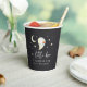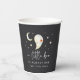 Add a playful touch to your fall celebration with these Halloween-themed baby shower paper cups from the A Little Boo collection by Redwood & Vine Design Co. The design features a cheerful watercolor ghost, crescent moon, and stars on a deep black background, with the phrase “a little boo is almost due” and a customizable line of event text. Perfect for serving beverages at spooky baby showers, Halloween parties, or October events.