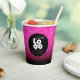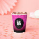 Téléchargez facilement votre logo ou tout autre graphique personnalisé dans cette tasse de papier 8oz. Des minimums bas et pas de frais de configuration coûteux. L'arrière - plan / base de tasse est une poussière de parties scintillant simulée en rose néon et noir mat ombre