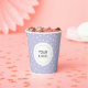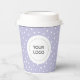 Cette tasse en papier minimale est munie d'un logo simple et d'un motif confetti brosse sur un arrière - plan violet. Ajoutez votre logo et customisez le texte avec vos informations. Vous pouvez utiliser cette tasse personnalisée à votre lieu d'affaires, magasins, événement d'entreprise ou, etc.