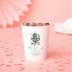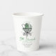Ces tasses blanches "Lucky Little Shamrock" en papier baby shower neutre pour le sexe présentent un chic chariot de bébé victorien tiré à la main, orné d'un shamrock et de tons verts doux. Personnalisez avec les détails de l'événement. Idéal pour les baby showers de mars, pour accueillir un bébé irlandais ou une fête autour de la Saint Patrick !