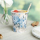 Ce design artistique délicat présente des roses, des fleurs sauvages et des fleurs d'hydrangée bleu pâle, avec du feuillage de sauge pastel clair sur arrière - plan en coquille d'oeuf.