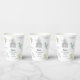 Cute pastel birthday paper cups featuring playful flying dragons, a magical castle and soft clouds paired with fun, stylish typography on different color backgrounds. You can find more matching items from this collection in our store.