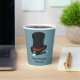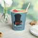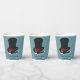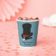 Ajoutez votre propre message personnalisé pour créer des fournitures de fête personnalisées pour les fêtes d'anniversaire à thème de spectacle magique et d'autres événements spéciaux. Ces tasses en papier représentent un casquette de magicien noir et rouge et une baguette magique noir et blanc contre un arrière - plan bleu clair.
