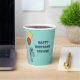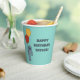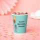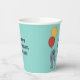 Un demi-tee comme un manteau avec des tasses de fête sur mesure. Ces tasses en papier sont illustrées d'une mangue grise tenant des ballons rouges et jaunes contre un arrière - plan bleu clair. Ces tasses sont prêtes à être personnalisées avec votre propre message.