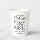 Les tasses de mariage papier présentent une élégante combinaison de style "Manger, Boire et Être Marié" en noir avec une couleur arrière - plan blanche propre - note, les couleurs peuvent être customisées. Personnalisez avec les noms des mariés et des mariés et leur date de mariage.