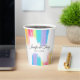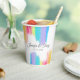 Belle tasse en papier mariage arc-en-ciel avec de jolies touches de peinture artistique pleine de couleurs vives. Cette décoration de table colorée est parfaite pour un couple artistique ou une réception gay et lesbienne.