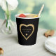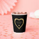 Gobelets En Papier Mariage coeur pailleté noir et or