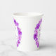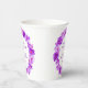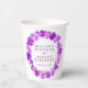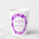 Aquarelle lâche art joli violet moderne fleurs couronnes mariage tasses en papier. Personnalisez ces tasses à fleurs mauves blanches et violettes avec les noms de votre mariée et de votre mariée et la date du mariage. D'autres panneaux de fleurs d'alto violet printanier assortis mariage et des articles d'événements sont disponibles. © Unique aquarelle peinte à la main par Sarah Trett pour www.mylittleedenweddings.com