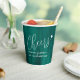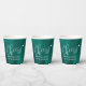 Perdre les tasses en papier mariage abstraites riches en émeraude. Un design contemporain simple et moderne, idéal pour des événements mariage ou d'anniversaire dans de jolis tons vert émeraude. Personnalisez avec votre propre nom de couple ou les détails de la fête. © Original aquarelle art et design par Sarah Trett pour www.mylittleedenweddings.com