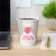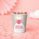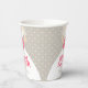 Elégante robe nuptiale avec poy rose stylisé rose floral et gris coeur pluie nuptiale pot en papier jetable douche nuptiale. Éditez ces tasses avec votre propre nom de mariée à être. Idéal pour une fête de douche nuptiale et correspond à la robe bouquet rose roses mariage ensemble. © Art graphique et design original par Sarah Trett. www.mylittleedenweddings.com