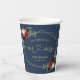 Gobelets en papier mariage de la mariée et du marié en bleu marine et floral burgundy