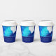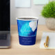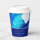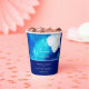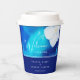 Tasses en papier mariage avec fleur blanche sur l'arrière - plan d'eau claire, aquarelle turquoise azurée, arrière - plan floral de printemps ou d'été de couleur aérée. Tasses en papier Mariage à fleurs florales blanches et botaniques élégantes. Collection Ressortissante.