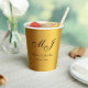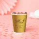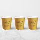 Ces élégantes tasses en papier de mariage personnalisées présentent une élégante calligraphie noire pour vos noms et date mariage pour personnaliser sur un arrière - plan faux or. Meilleurs voeux pour votre mariage et mariage ! Conçu par Susan Coffey.
