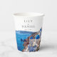 Ces élégantes gobelets en papier pour mariage à Santorin Grèce aquarelle peuvent être personnalisés avec vos informations en typographie moderne. Conçus par Thisisnotme©