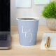 Tasses en papier bleu poussiéreux chic et élégant pour mariages et événements spéciaux. Ces tasses monogrammes comportent d'élégantes initiales de couple en blanc, ainsi que votre zone de texte optionnelle à l'arrière.