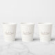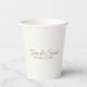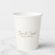 Ajoutez d'élégantes tasses en papier de mariage pour votre fête mariage. Idéal pour les couples à la recherche de matériel de mariage élégant. L'avant et l'arrière affichent le nom du couple et la date du mariage. Utilisez le modèle pour customiser le texte. Créez vos propres tasses de papier mariage.