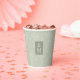 Avec une palette de couleurs allant de l'ivoire au vert printanier et la mousse foncée, cette collection mariage dispose d'une police manuscrite et des accents de feuilles d'eucalyptus pour ajouter cette merveilleuse touche moderne. La tasse en papier de coordination montrée ici a tout ce qui précède avec un motif en feuille d'eucalyptus frappant et un cadre rectangulaire, découpé en blanc pour tenir vos initiales et la date mariage. Recherchez ID901 pour voir d'autres choix de couleurs et coordonner des pièces pour cette collection de mariages unique.