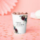 Gobelets en papier mariage floral boho bordeaux et rose blush. Ces gobelets en papier se caractérisent par des roses et des fleurs boho bordeaux et rose blush avec deux polices modernes haut de gamme qui façonnent les tendances actuelles et futures des événements festifs.