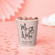 Coupes en papier rose vif personnalisées pour votre réception de mariage et des événements avec "Mr & Mrs" écrit dans un grand script et une illustration de deux anneaux mariages réunis. Personnalisez avec votre nom de famille et votre date de mariage.