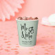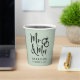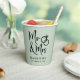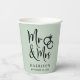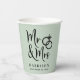 Coupes de papier vert sauge personnalisées pour votre réception de mariage et des événements. "M. & Mme" est écrit dans un grand texte à côté d'une illustration de deux anneaux mariages réunis. Personnalisez avec votre nom de famille et votre date de mariage.