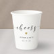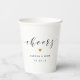Gobelets en papier personnalisés avec calligraphie moderne 'cheers' et motif de cœur en or.