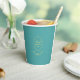 Créez des tasses de papier mariage personnalisées. Dispose d'un design rose en turquoise et or avec le nom du couple mariage et la date du mariage. Modifiez simplement le texte pour répondre à vos besoins. Utilisez le modèle pour personnaliser.