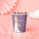 Ce gobelet en papier à thème bohème présente un gracieux rideau de perles et une mariée bohème époustouflante aux cheveux blonds dans une délicate robe de mariée en dentelle. Orné d'un bouquet luxuriant de roses, d'herbe de pampas, d'eucalyptus et de renoncules.